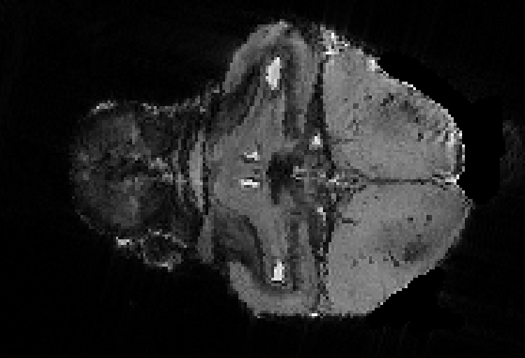 The volume of this brain is 0.107 ml and the weight of the brain is 0.11 g.