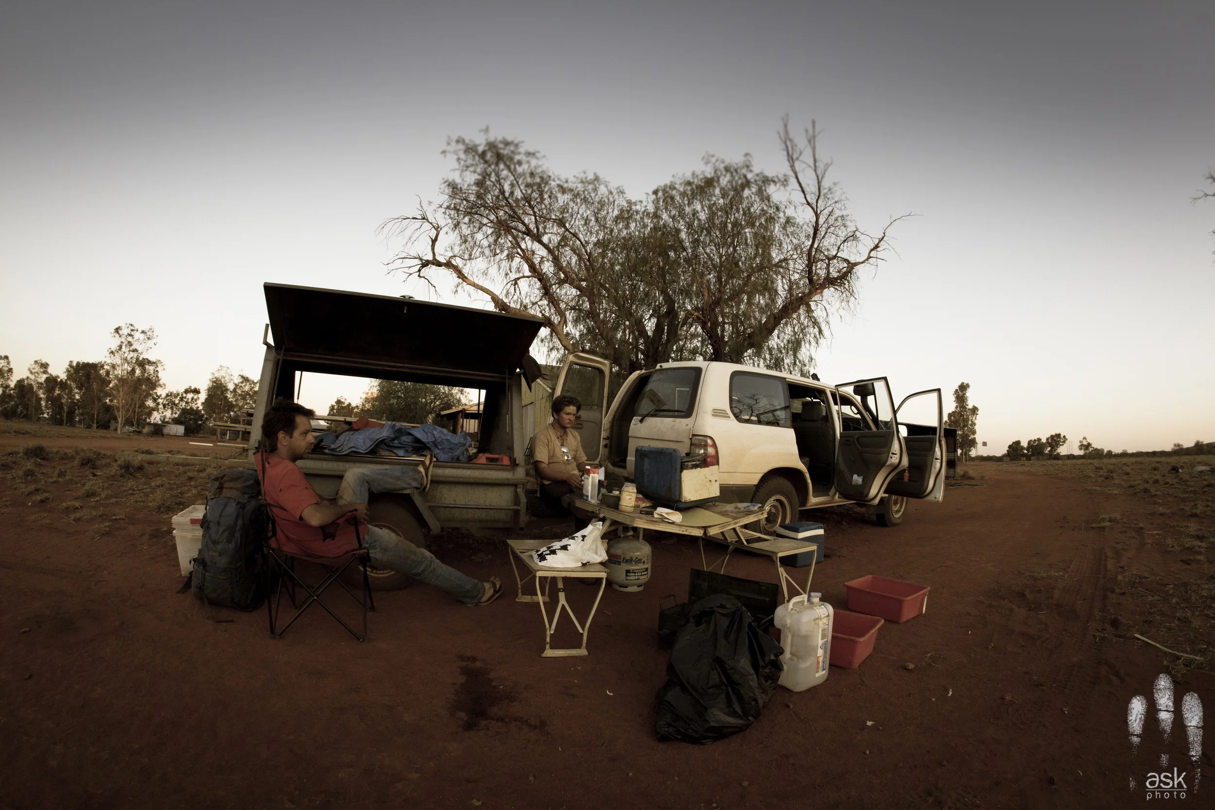 The Landcruiser is a great fieldwork vehicle for many reasons, but trunk space is not one of them. While in the field I always had up to three volunteers with me, and four people in the Landcruiser leaves little room for storage (and the more people, the more stuff there is that needs to be stored). Our beloved little blue trailer was very useful in transporting all the stuff that comes along with moving a bunch of people through remote areas. Everyone has their own massive backpack filled with personal stuff, their own tent or swag for sleeping, plus we needed to move massive amounts of food and water, a kitchenette with which to prepare meals and eat them, and a propane tank to run the camping stove. Really, the amount of stuff we needed to haul around with us to keep ourselves alive far exceeded the amount of stuff we needed to haul around to do the fieldwork. And that's why we needed that little blue trailer.